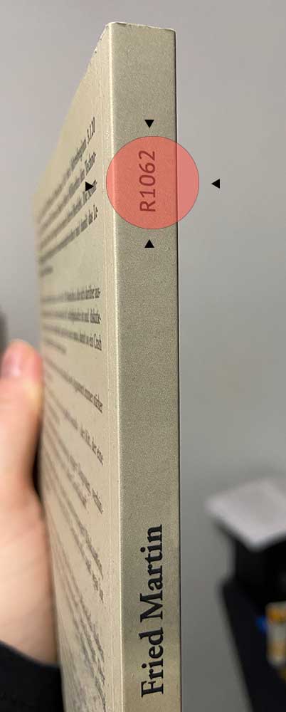 Sie finden diese Nummer oben auf dem Buchrücken. Die Nummer hat ein vorangestelltes "R".